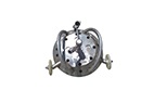 空化射流拋光器由兩個(gè)旋轉(zhuǎn)噴嘴帶動(dòng)打磨盤,在清洗的同時(shí),對(duì)螺旋槳進(jìn)行拋光打磨,使其表面光滑潔凈,光滑的表面減少了海生物的附著。旋轉(zhuǎn)噴嘴外由整流罩包圍,空化現(xiàn)象能使打磨拋光盤與被清理面產(chǎn)生負(fù)壓提供吸力,設(shè)備可緊貼表面進(jìn)行工作。